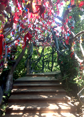 島上綠樹(shù)成蔭,山隨水轉(zhuǎn),水繞山行我們先后游覽了“龍興酒棧”“白龍瀑”“蝴蝶谷”“聽(tīng)海竹樓”等